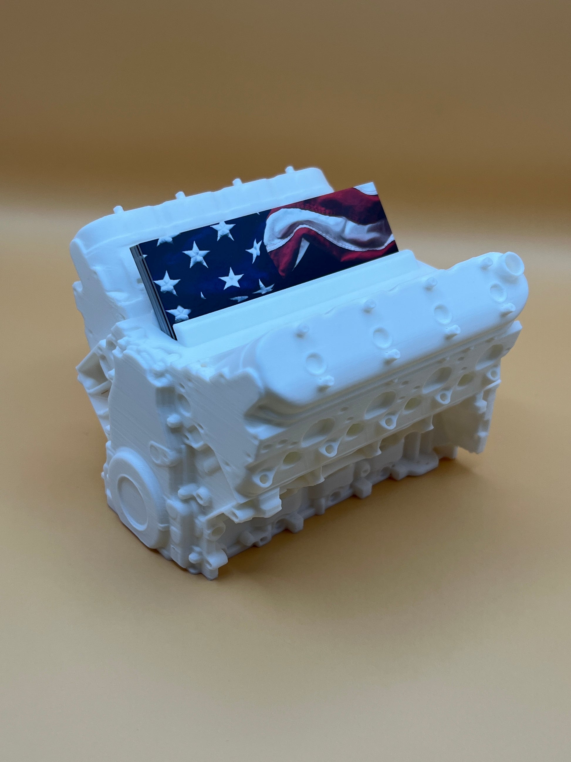 âTransform your workspace into a high-octane pit stop with this unapologetically badass V8 swap desk accessory â a business card holder that doesnât just sit there, it roars. Inspired by the raw power and rebellious spirit of American muscle, this piece is engineered for gearheads, entrepreneurs, and anyone who lives life in the fast lane.